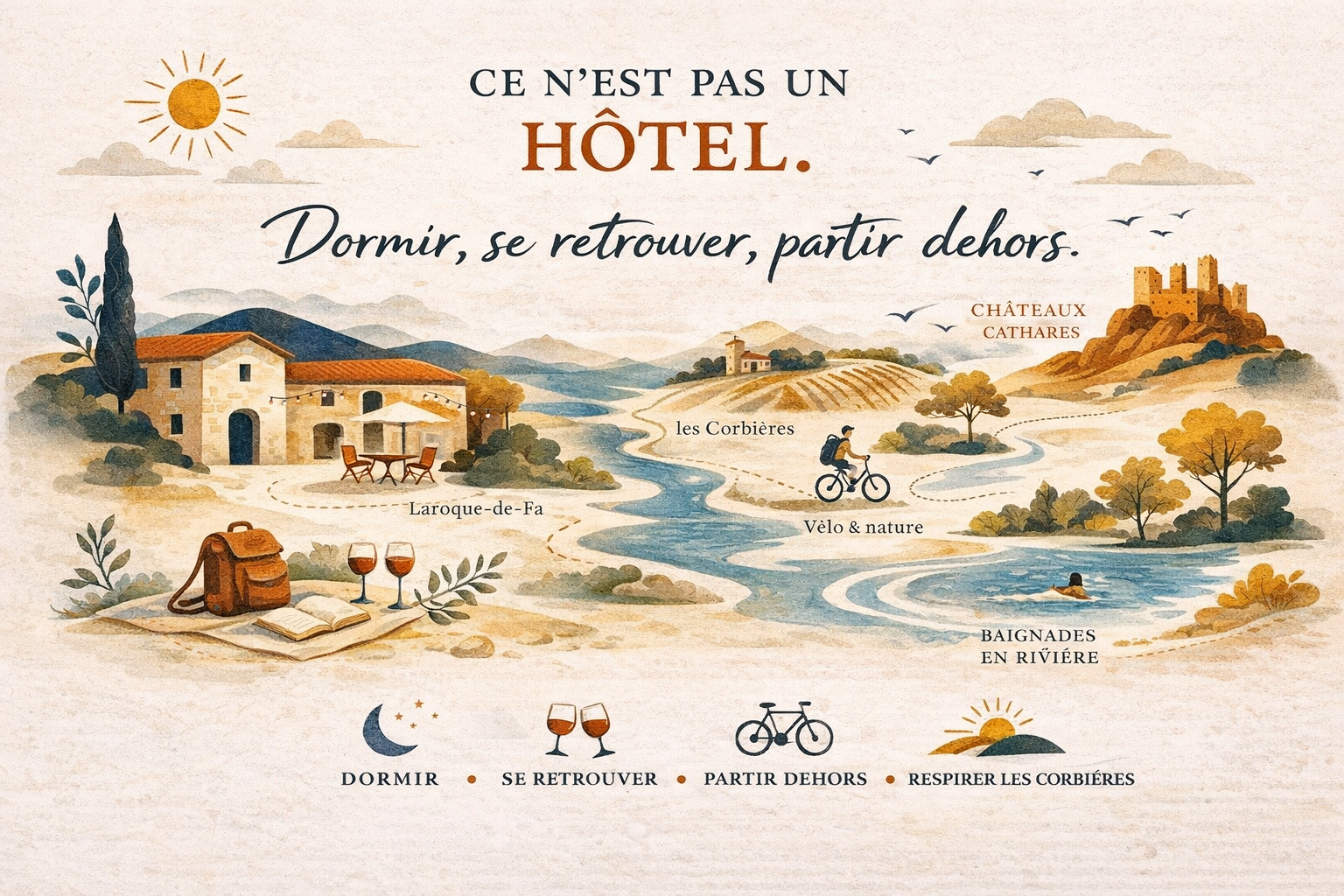 Dormir, se retrouver, partir dehors — à Laroque-de-Fa, au coeur du Pays Cathare.